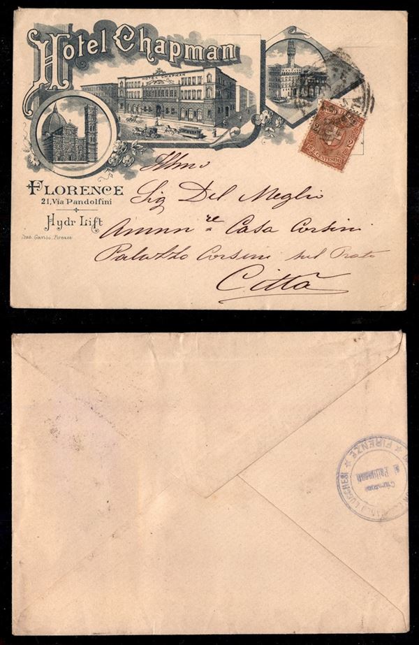 Hotel Chapman Firenze - 2 cent Stemma (66) su busta illustrata