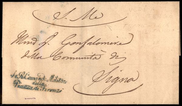 I.R. Comando Militare della Piazza di Firenze (verde) - piego in franchigia per Signa