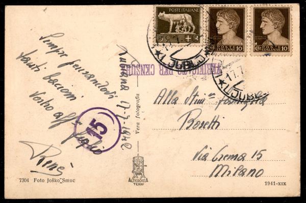 Imperiale (243 + due 245 - Regno) su cartolina da Lubiana a Milano del 17.7.1942
