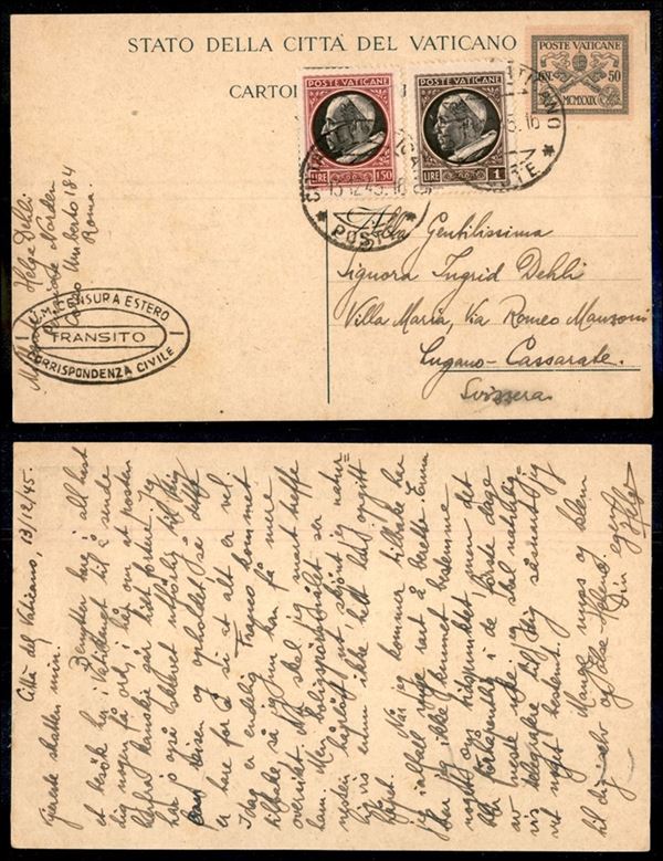 Intero Postale da 50 cent con affrancatura aggiuntiva (94/95) per Lugano del 13.12.45