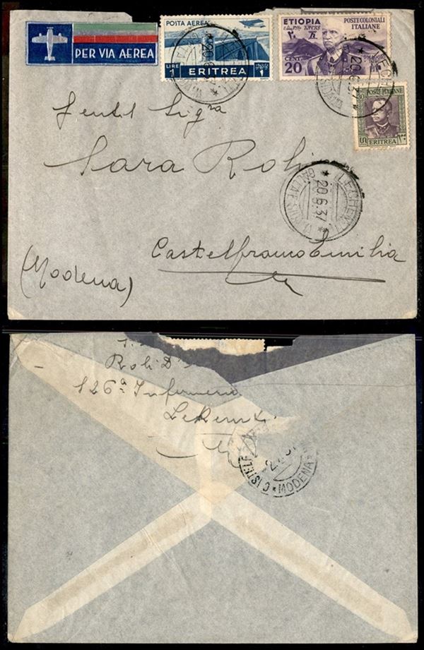 Lechenti e Sidana (P.ti 10) - aerogramma per Castelfranco del 20.6.37 (197 + 21 Aerea + 2 Etiopia)