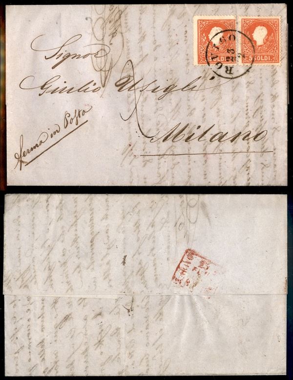 Lettera da Rovigo a Milano del 23.2.60 con due 5 soldi (30) - ferma in Posta - tassata