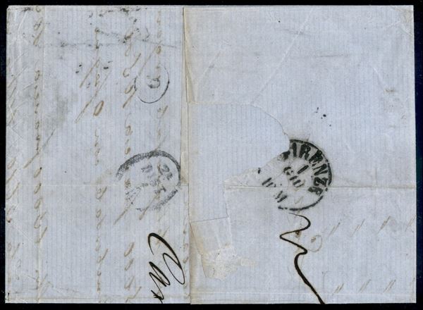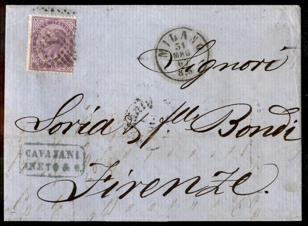 Lettera tre porti da Milano per Firenze del 31 mag. 67 con 60 cent (21) isolato - non comune