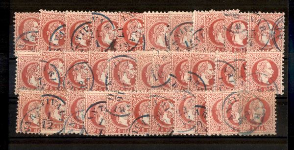 LEVANTE AUSTRIACO - ANTIVARI (azzurro-Pti.8) - 5 soldi (3) - insieme di 35 esemplari usati - qualità mista