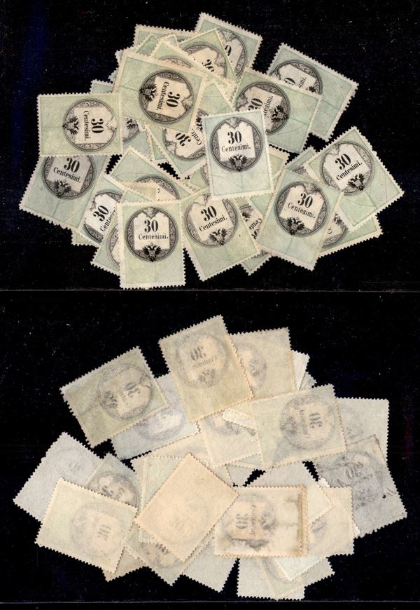 LOMBARDO VENETO - Marche da Bollo - 34 esemplari del 30 cent (4-8) - gomma originale (anche parziale) e senza - da esaminare