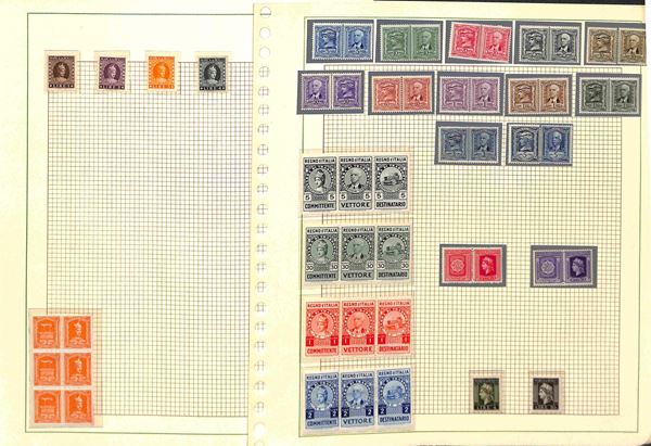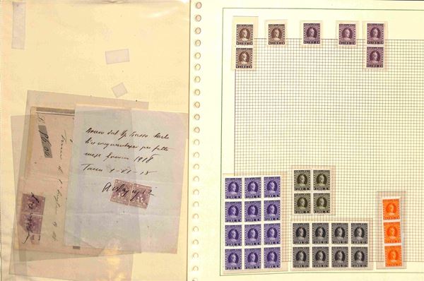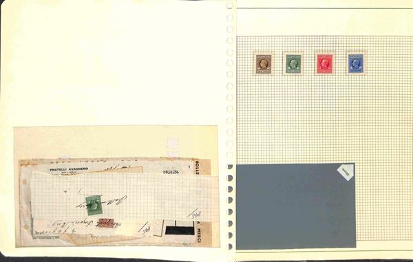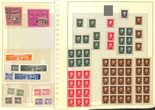 MARCHE DA BOLLO - 1905/1945 - Piccolo insieme di valori nuovi usati e alcuni frammenti del periodo in 7 pagine d'album - da esaminare