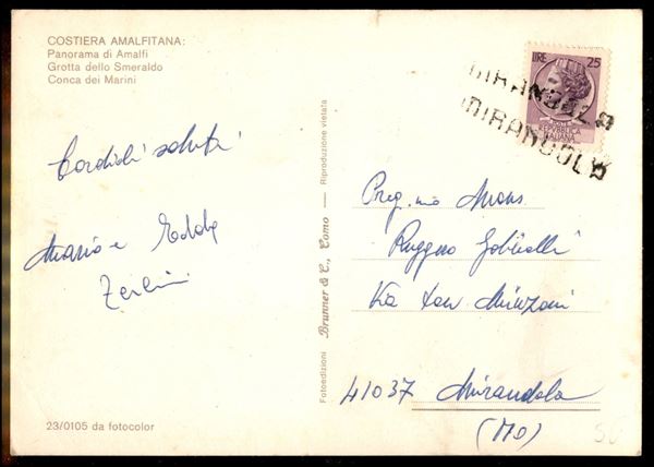 Mirandola - 25 lire Turrita (769) su cartolina per Mirandola