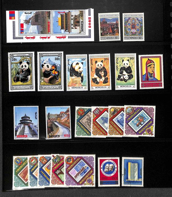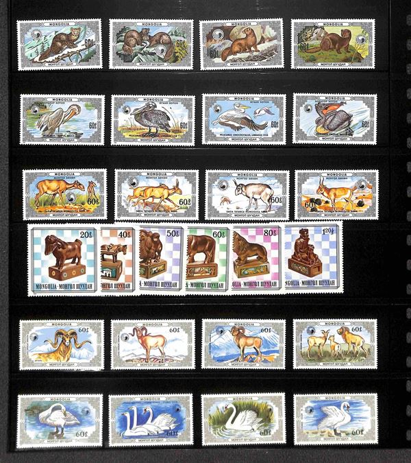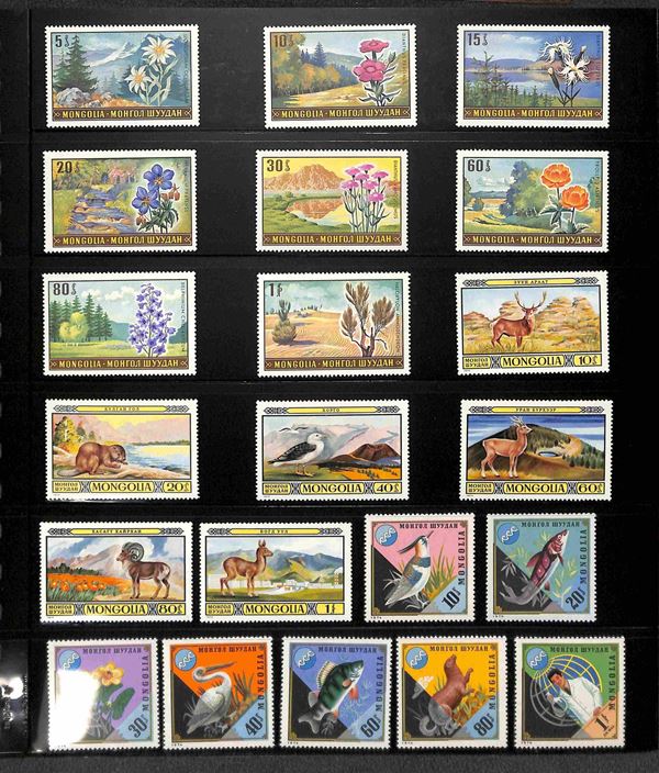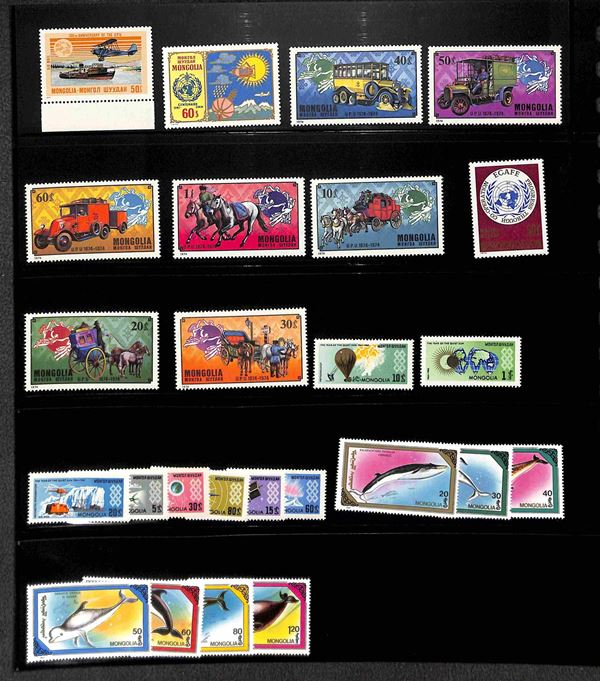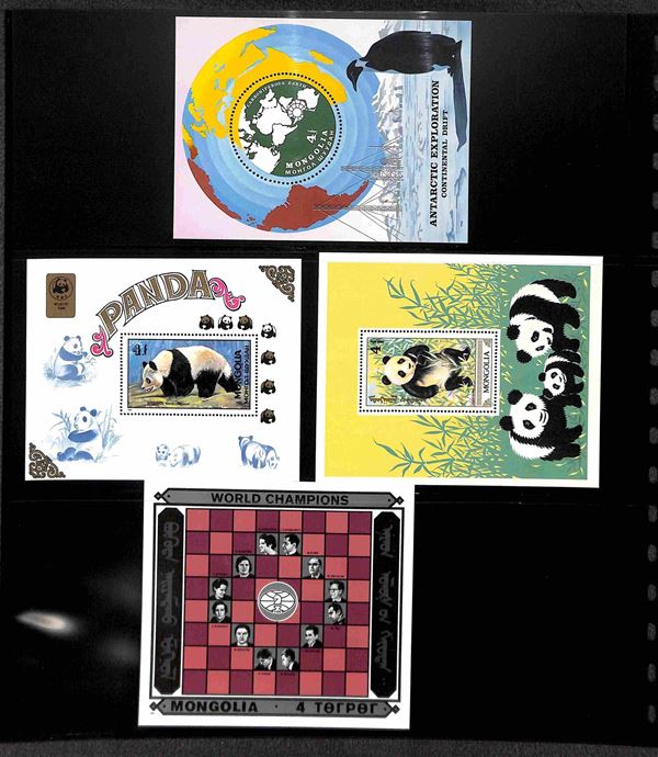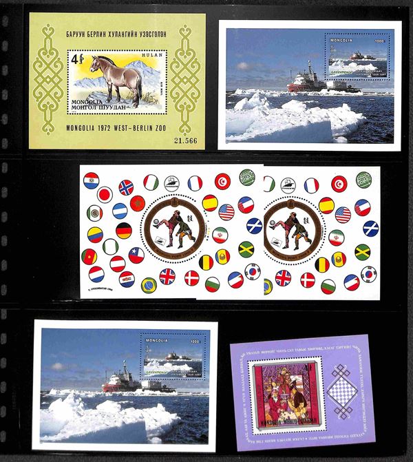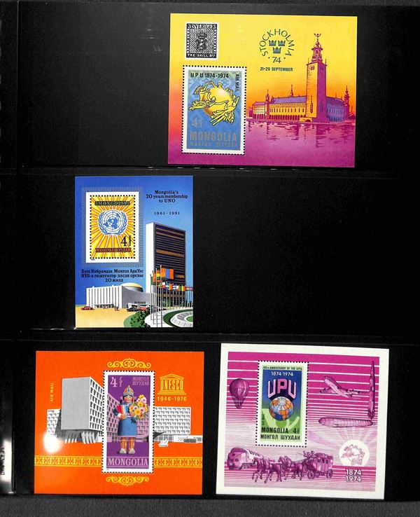 MONGOLIA - 1970/2000 - Collezione di valori serie complete e foglietti del periodo in 8 pagine di raccoglitore - gomma integra