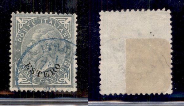 Muto a Rombi (leggermente impresso) + Italie (doppio cerchio) entrambi in azzurro - 5 cent Estero (3)