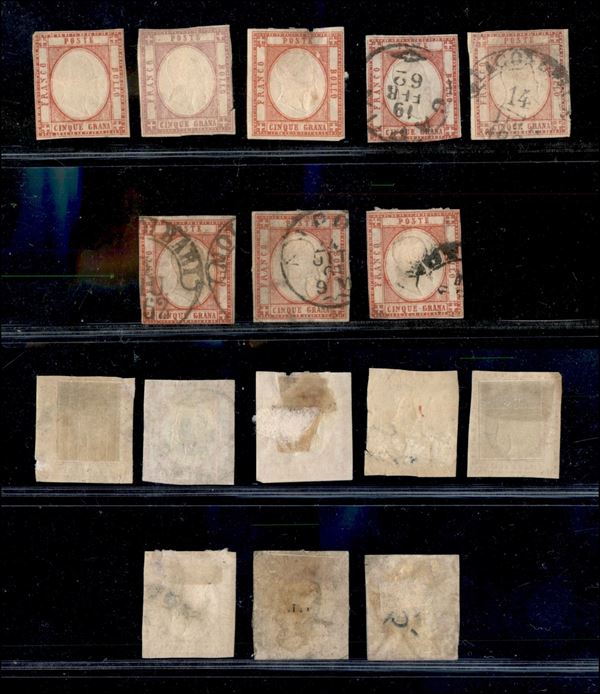 NAPOLI - 1861 - 5 grana (21) - tre nuovi con gomma + cinque usati - insieme di seconda scelta - da esaminare