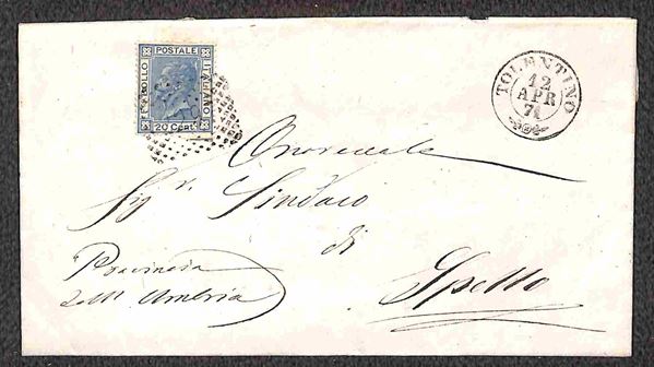 Numerale a punti di Tolentino - 20 cent (26) su piego per Spello del 12.4.71
