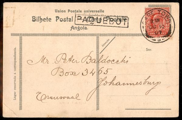 Paquebot - cartolina da Cittą del Capo a Johannesburg del 18.9.07 con affrancatura di Gran Bretagna (104)