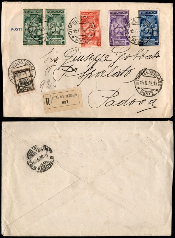 Pio XII (68 coppia+69/71) + complementare (20) - raccomandata da Cittą del Vaticano a Padova del 15.6.39