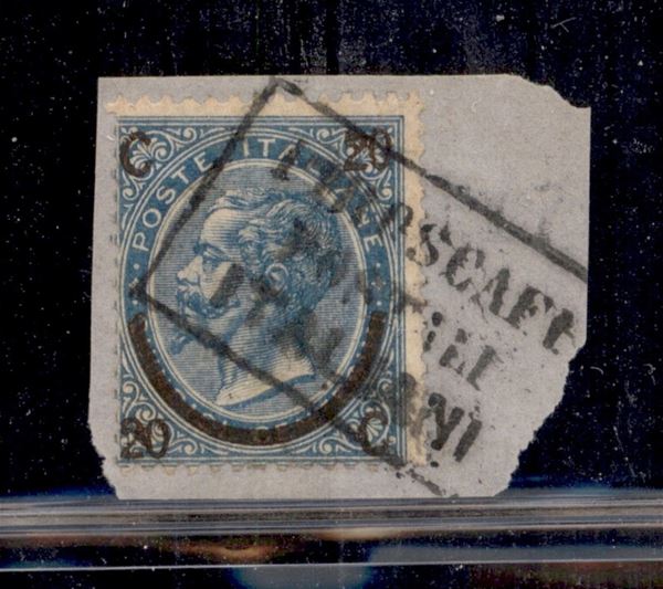 Piroscafi Postali Italiani - 20 cent su 15 (24) usato su frammento - soprastampa molto inchiostrata (sembra doppia)