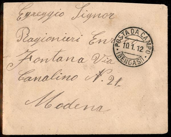 Posta da Campo (Bengasi) - bustina in franchigia per Modena del 10.1.12