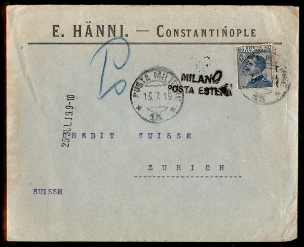 Posta Militare 15 - 25 cent Michetti (83 Regno) su busta da Costantinopoli a Zurigo del 15.7.19