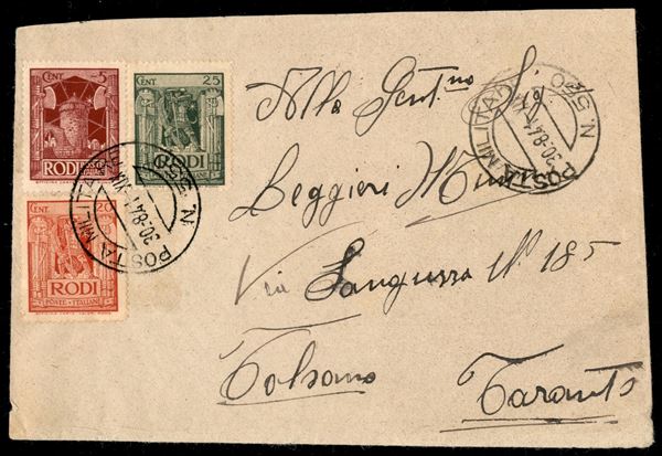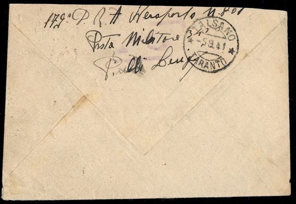 Posta Militare N. 550 - 3 valori (56 + 58 + 59) su busta per Taranto del 30.8.41