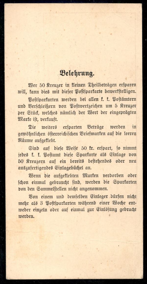 Postsparkarte - Cartolina postale di Risparmio da 5 kreuzer nuova