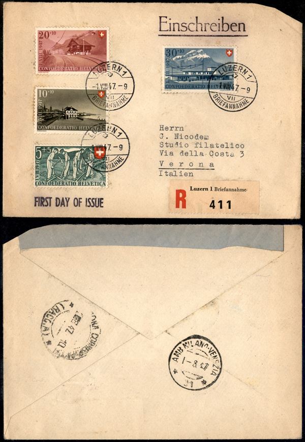 Pro Patria (480/483) - serie completa su raccomandata da Lucerna a Verona del 1.8.47