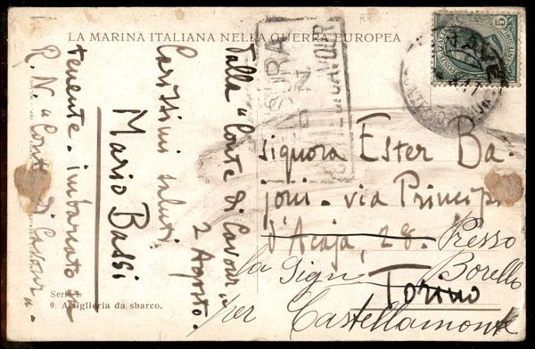 R. Nave Conte di Cavour - cartolina "da bordo" per Torino del 2.8.17