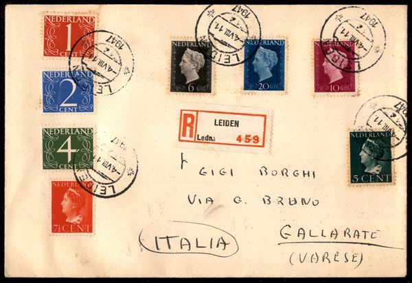 Raccomandata da Leiden a Varese del 4.8.47 con affrancatura multipla