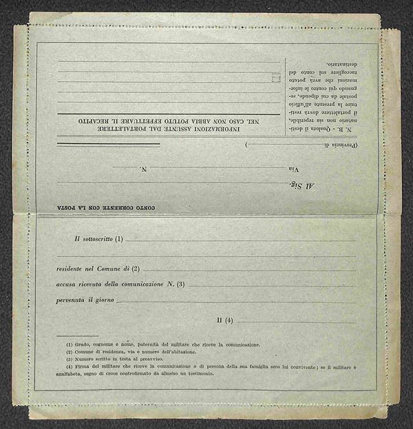 Regia Aeronautica - Preavviso Personale di Destinazione - intera busta lettera nuova