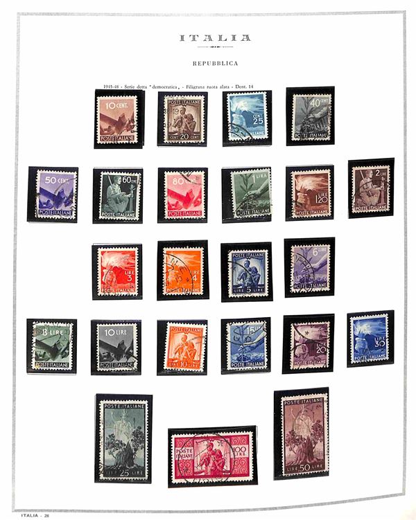 REPUBBLICA - 1945/1974 - Collezione di valori e serie complete del periodo in album e fogli Marini - unica mancanza Gronchi Rosa - usati - da esaminare