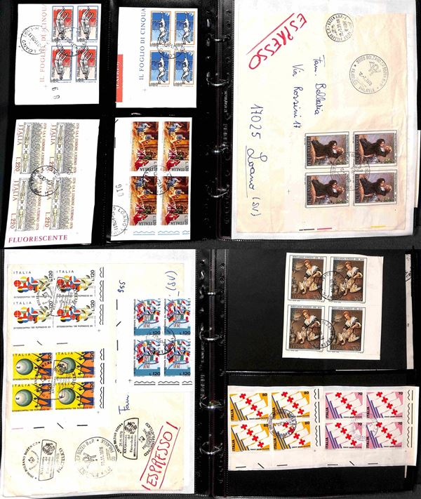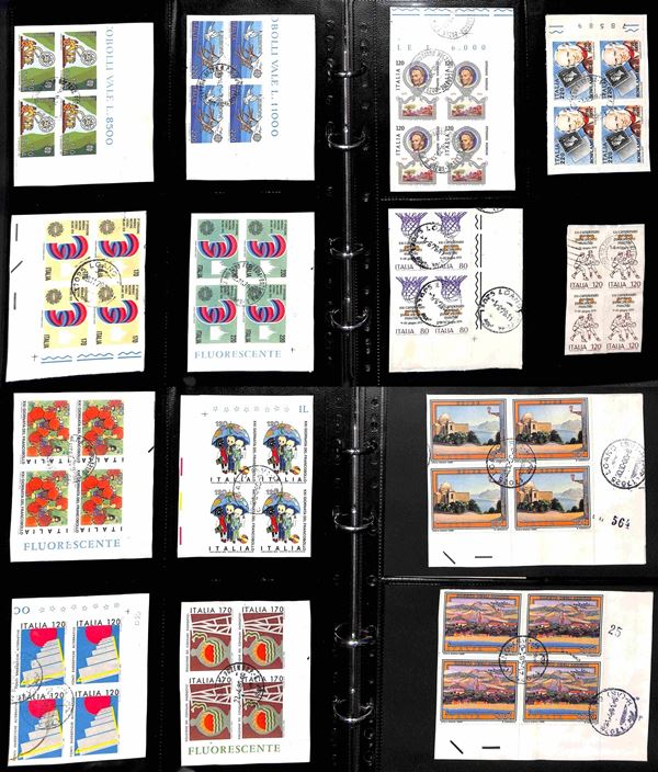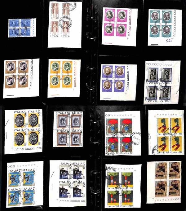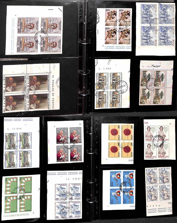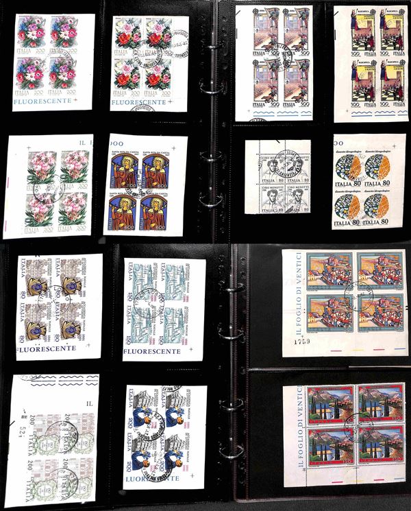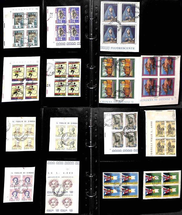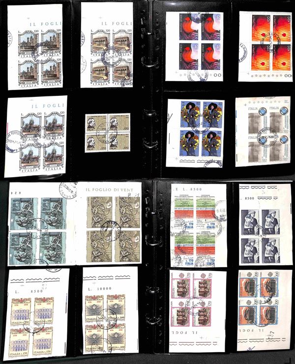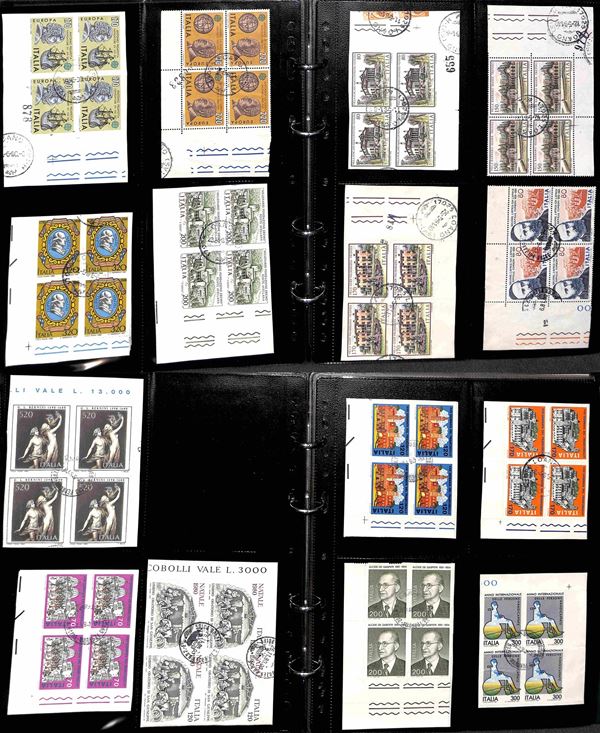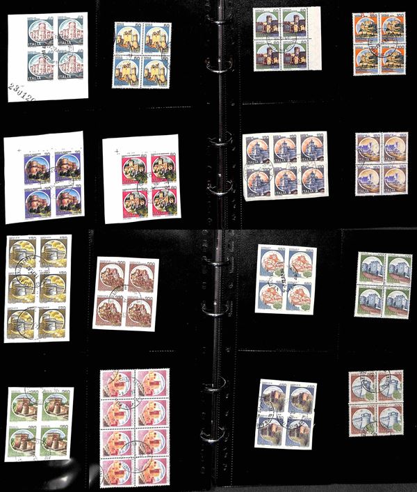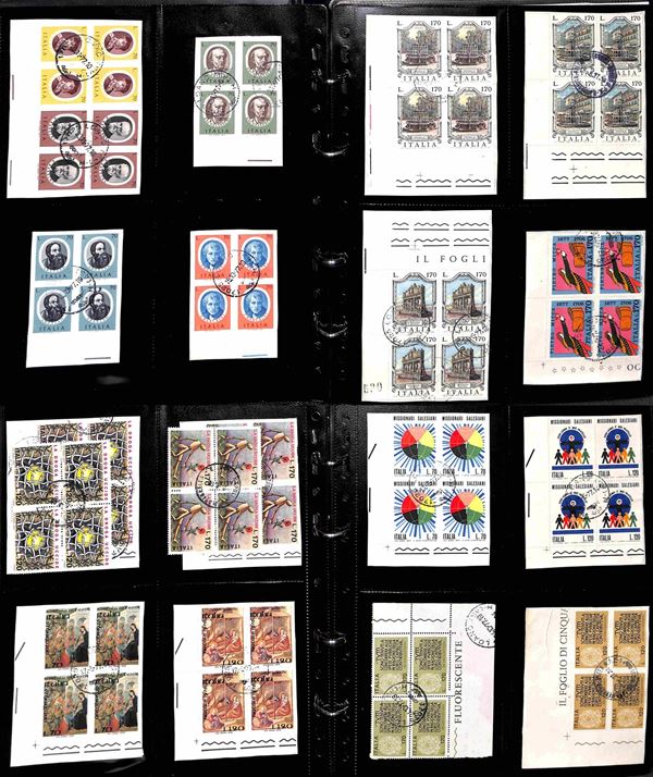 REPUBBLICA - 1976/1984 - Quartine usate - Collezione di valori emessi nel periodo in raccoglitore a tasche - circa 120 quartine diverse - bell'insieme