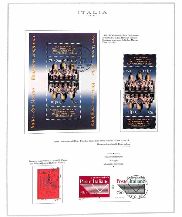 REPUBBLICA - 1981/1995 - Collezione di valori serie complete e foglietti del periodo in album e fogli Marini - pochissime mancanze - usati - da esaminare