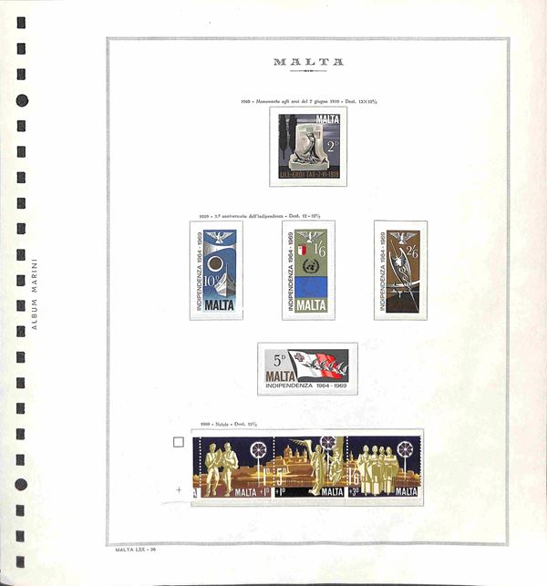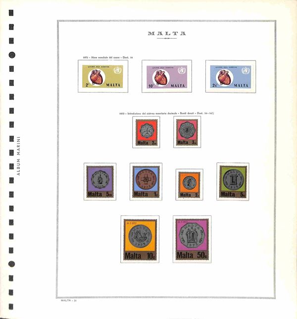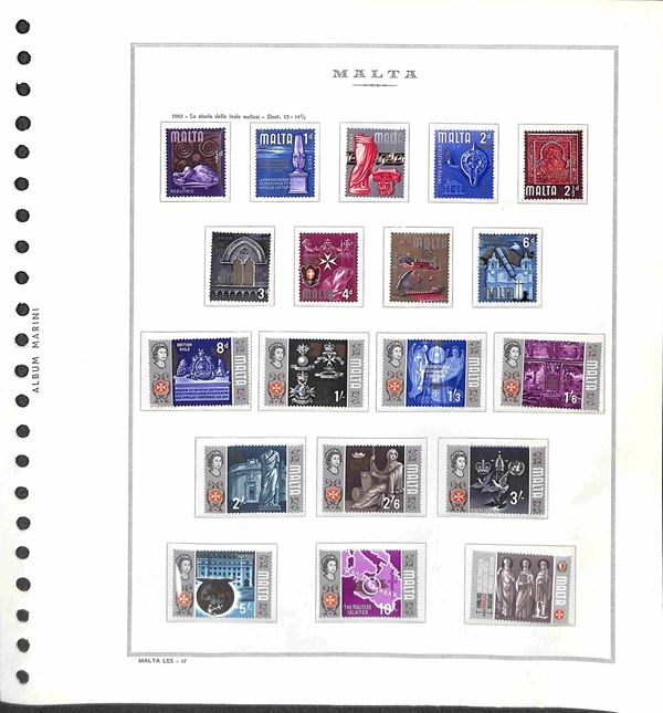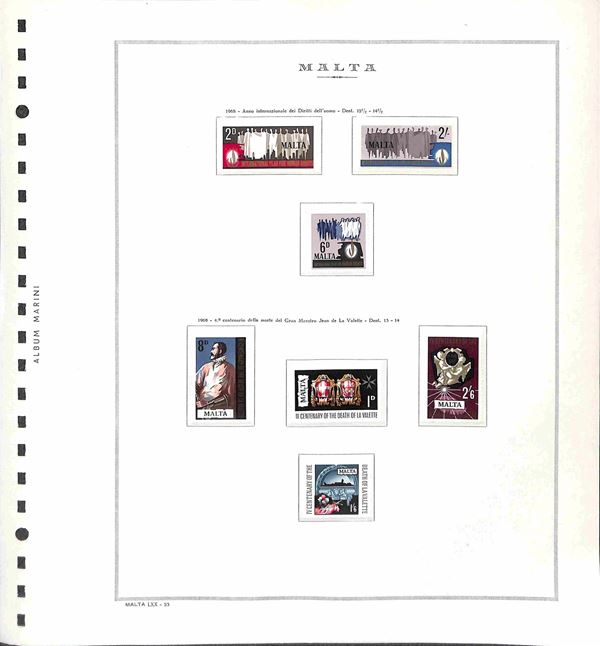 REPUBBLICA DI MALTA - 1964/1974 - Collezione completa delle emissioni del periodo in album (solo fogli) King Marini - gomma integra