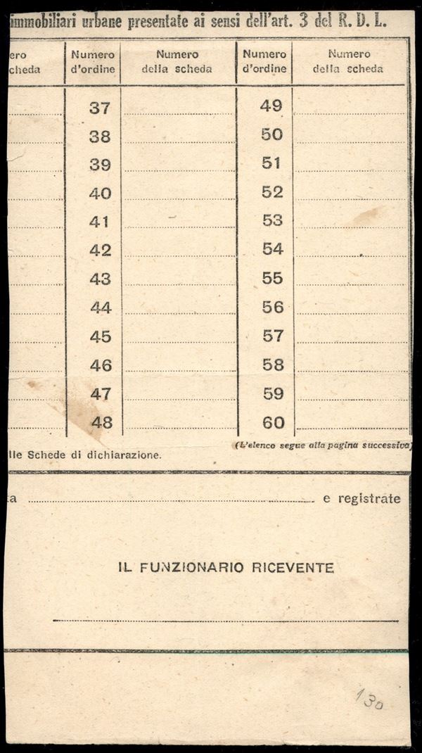 Ricevuta di pagamento di una lettera affrancata 50 cent Lupa (515) con annullo Rutigliano del 29.4.44 - a lato bollo guller + lineare San Vito Normanni - inusuale