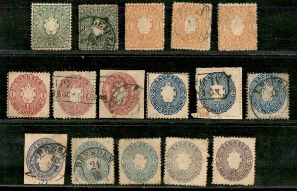 Sachsen - 1863 - Stemma - Insieme di 16 pezzi nuovi e usati con ripetizioni (14/17 + 19) - da esaminare