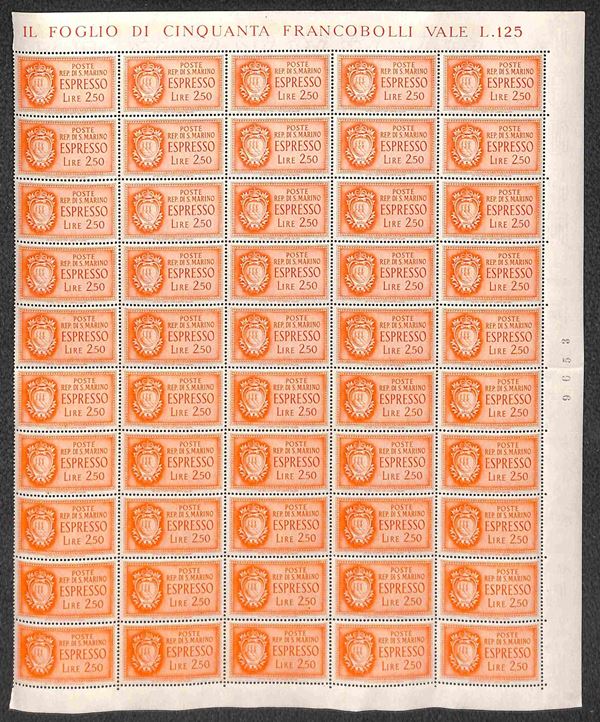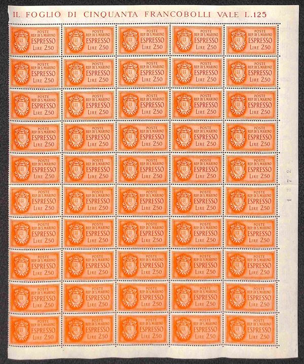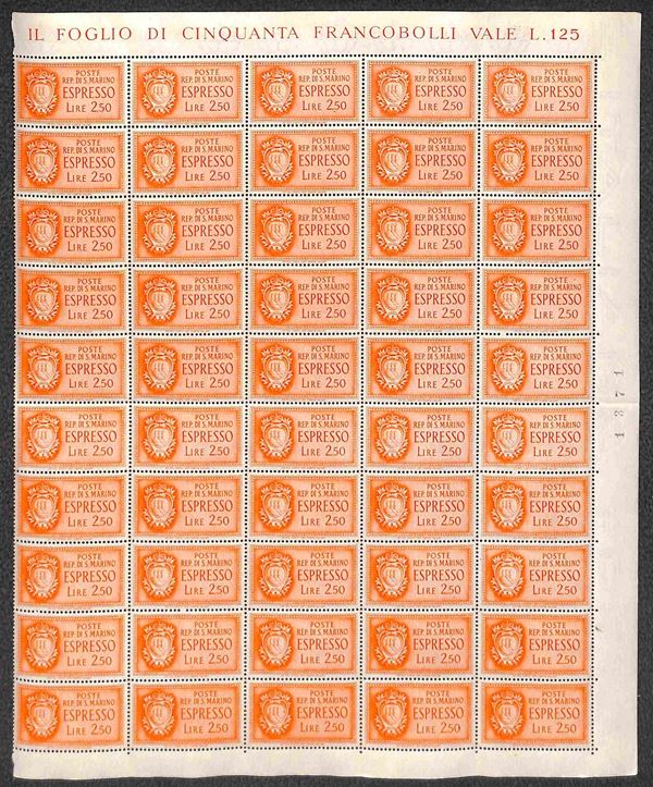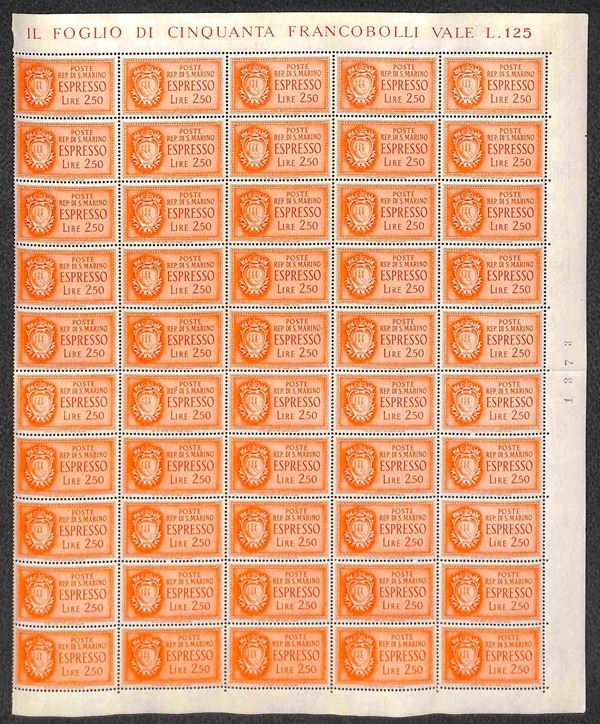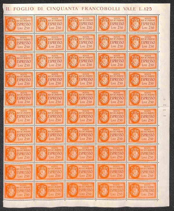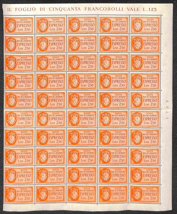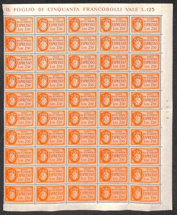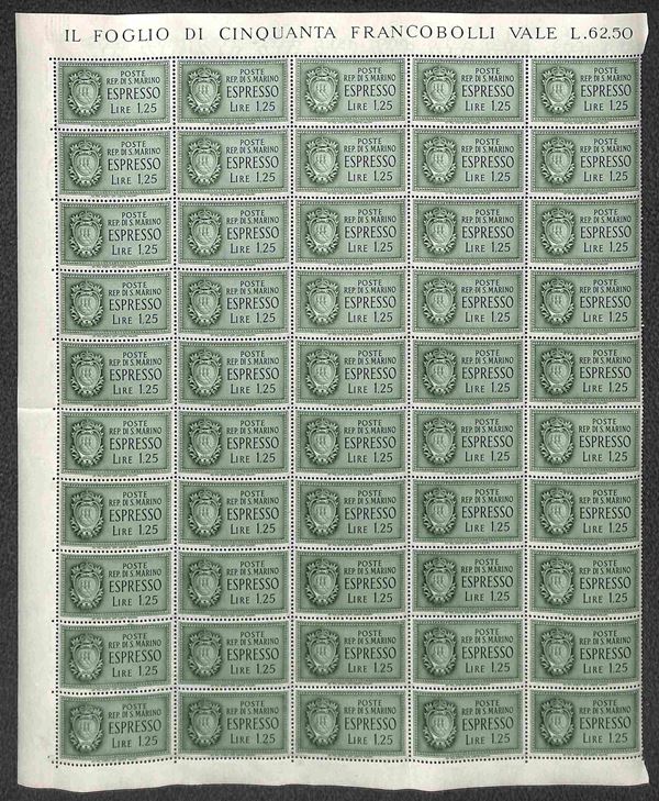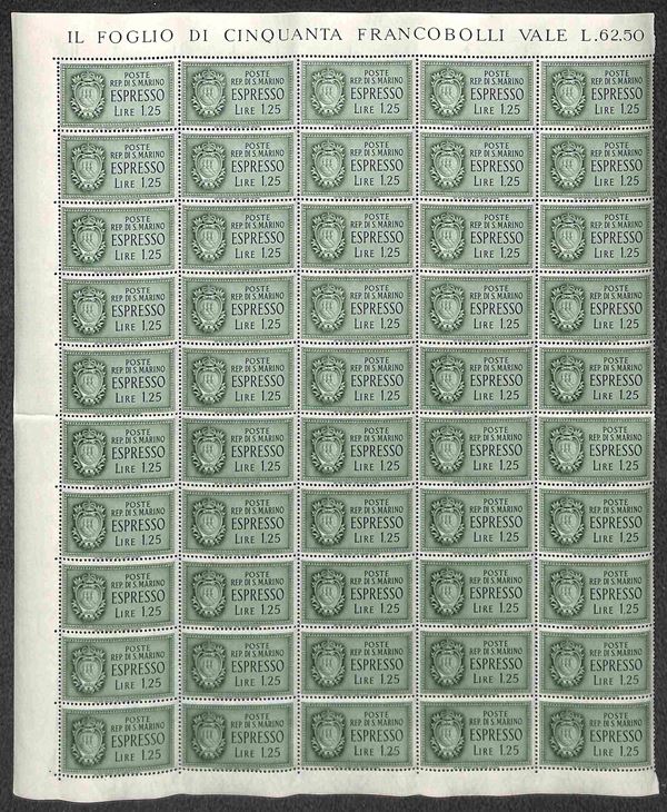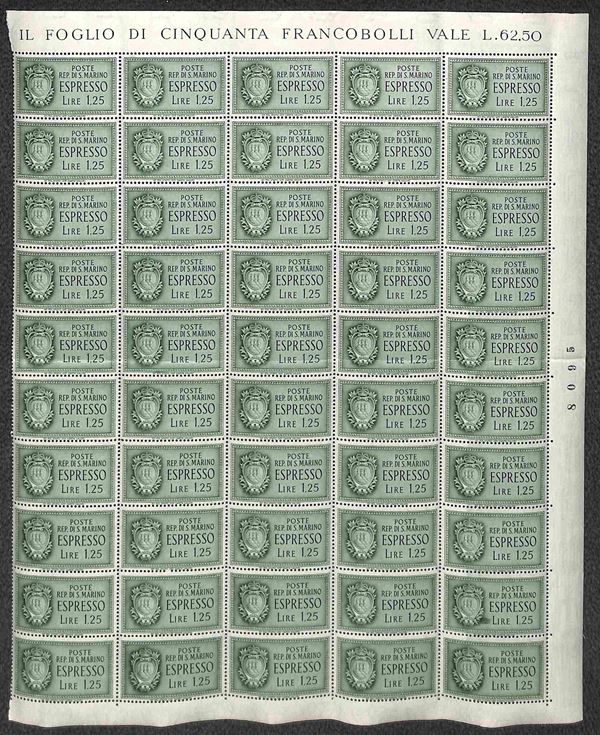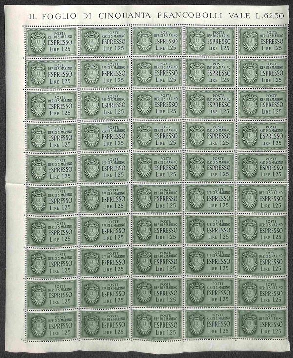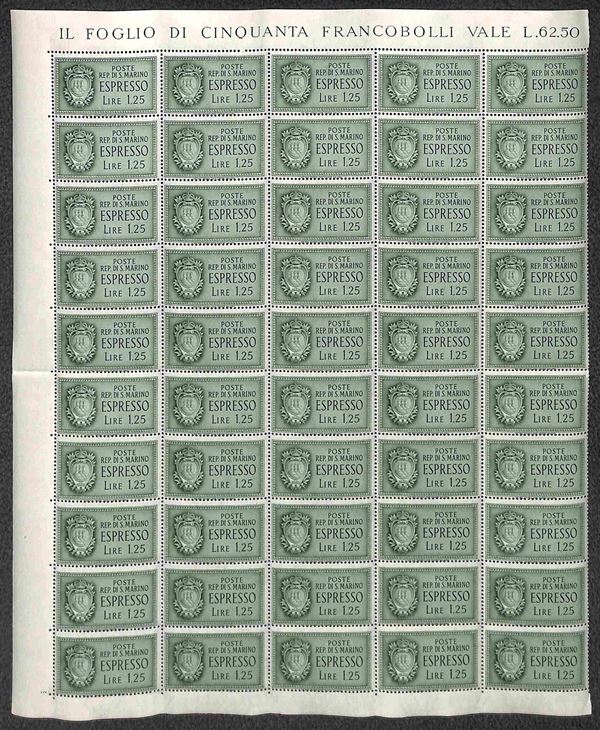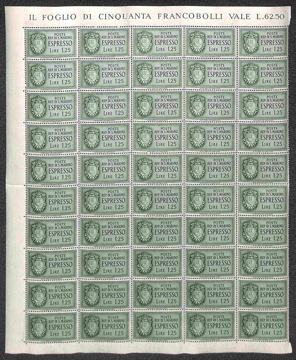 SAN MARINO - 1943 - Espressi (9/10) - serie completa in fogli - lotto di 350 serie - gomma integra