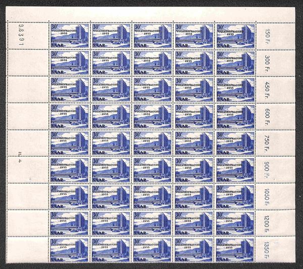Sarre - 1955 - Volksbefragung (362/364) - serie completa in blocchi di 45 con bordi integri su tre lati - gomma integra