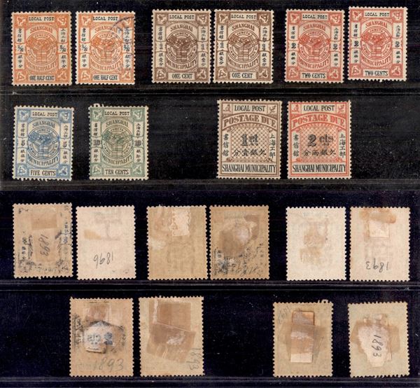 Shanghai - 1893/1897 – Bandiere – insieme di 10 valori di posta ordinaria e segnatasse – qualità mista (mich.40+)