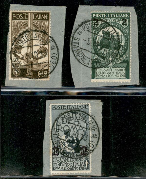 Stampalia 5.10.13 - tre valori di Regno (92+99+101) - usati su frammento