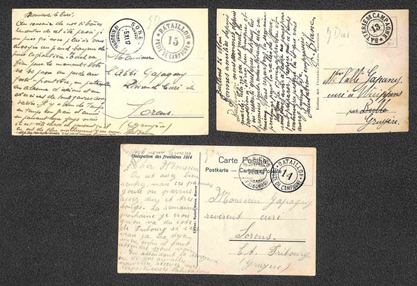 Svizzera - 1914/1917 - Poste de Campagne - Battaillon (13 + 14) + Batterie (13) - tre cartoline usate