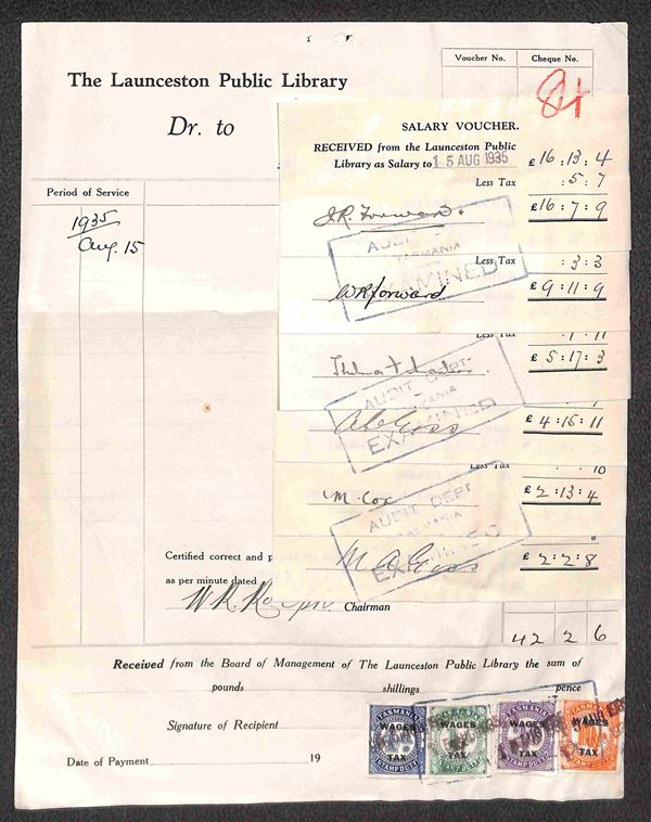 Tasmania - 1935 (15 agosto) - Fiscali - Salary Voucher