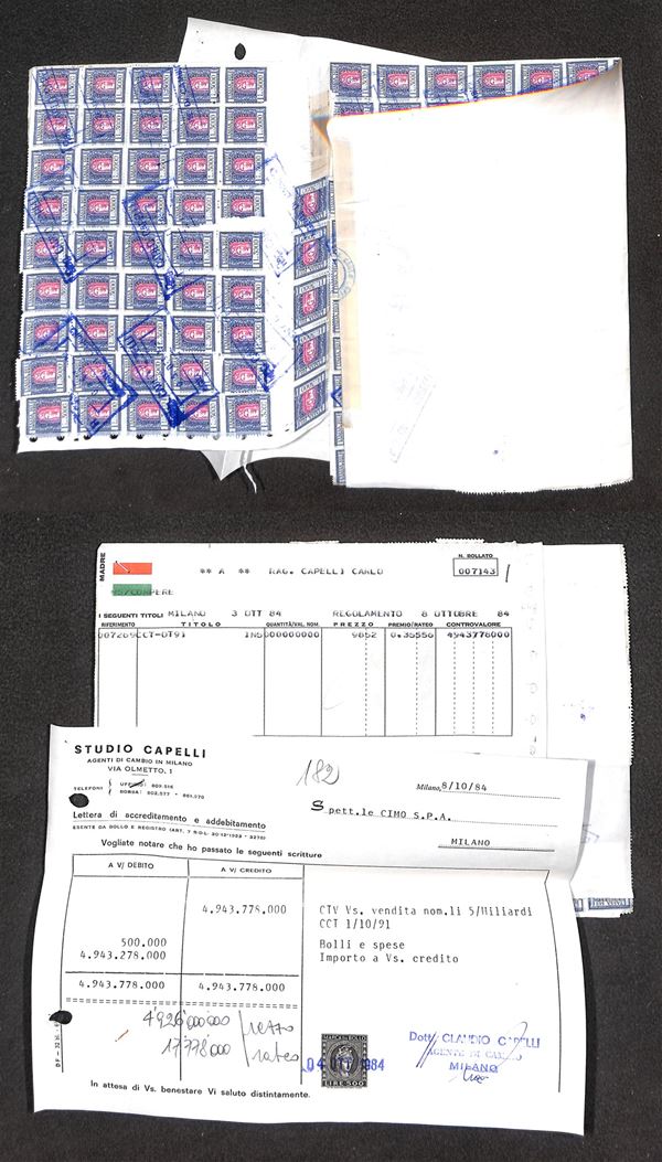 Tassa sui Contratti di Borsa - ricevuta per vendita di azioni per 5 miliardi con tassa per 495.000 lire - Milano 3.10.84