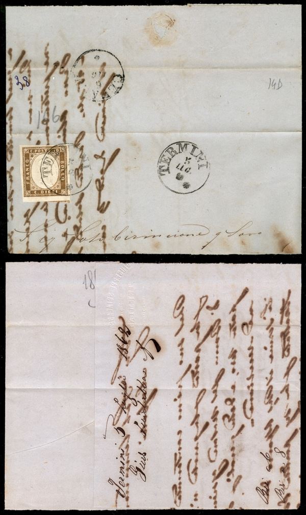 Termini (pti 7) - 10 cent (14D) su testatina di lettera per Cefalù del 5.7.1861