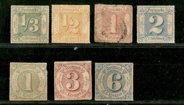 Thurn und Taxis - 1865 - Cifra - Insieme di 7 pezzi nuovi e usati (36/39 + 41/43) - da esaminare