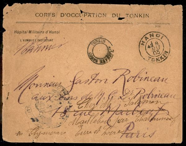 Tonkin/Corps Expedition - busta dall'Ospedale Militare di Hanoi a Parigi del 8.5.1903