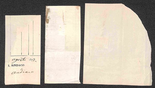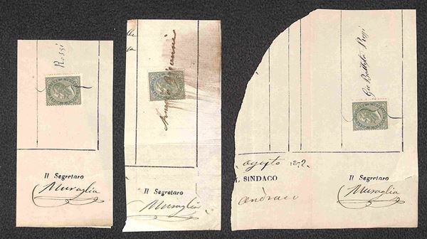 Tre frammenti di ricevute del 1872 con uso fiscale del 5 cent Torino (16)