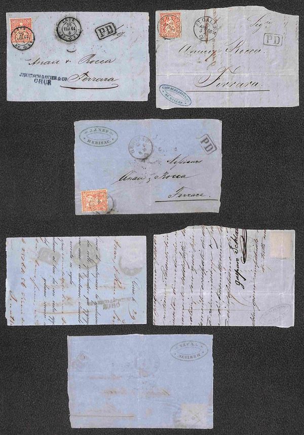 Tre frontespizi di lettere da Chur Herisau e St. Gallen del 1864/1866 col 30 cent (25)