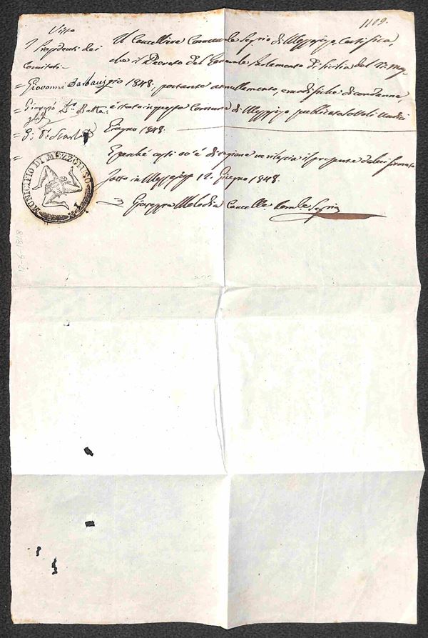 Trinacria - Municipio di Mezzoiuso - certificato del 12.6.48
