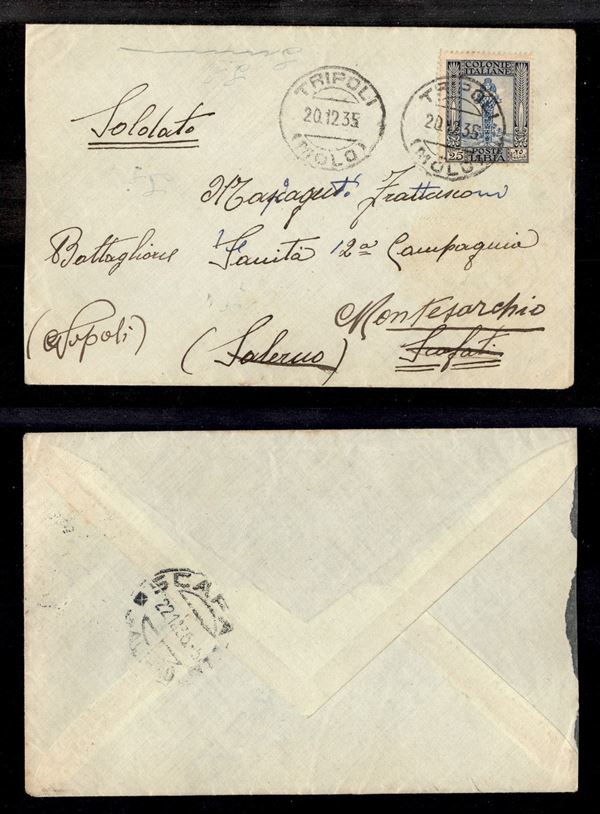 Tripoli (Molo) - 25 cent (49) su busta per Napoli del 20.12.35
