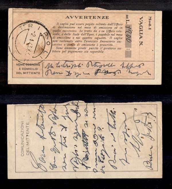Tripoli N. 3 (P.ti 13) - ricevuta di Vaglia del 2.1.43