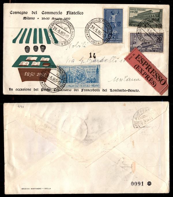 Unesco (618/619) + Salone di Torino (617) - espresso per cittą - Milano 28.5.50