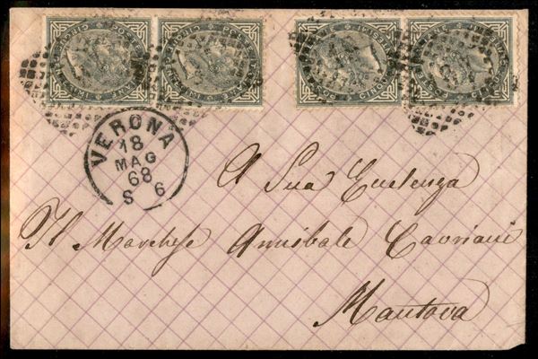 Valentina - 5 cent (16) - due coppie su bustina da Verona a Mantova del 18.5.68