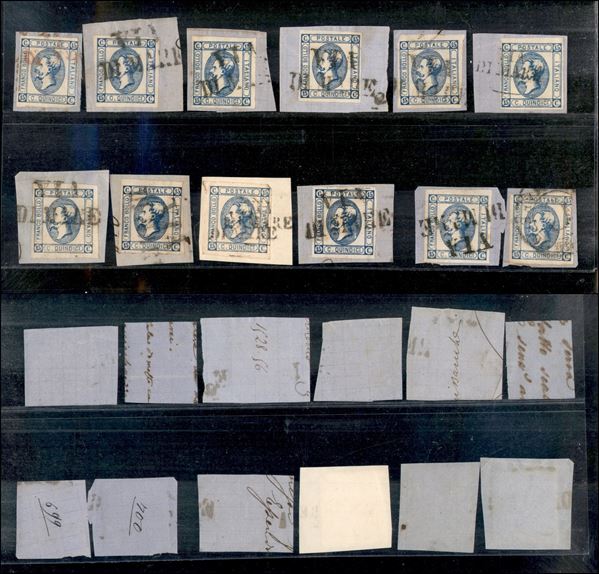 Via di Mare - 15 cent Litografico (12 - 13) 12 frammenti - qualità mista - da esaminare